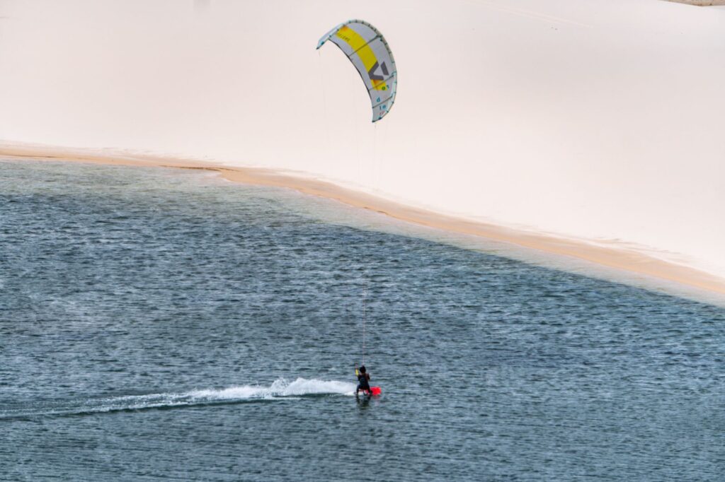Durante os meses de julho a dezembro, os ventos constantes da região fazem dos Lençóis um dos melhores lugares do mundo para a prática do kitesurf.